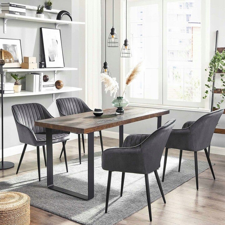 Tapicerowane krzesło do jadalni z podłokietnikami to doskonałe połączenie komfortu i stylu, idealne do każdego wnętrza. Szerokie siedzisko oraz poduszka o grubości 7 cm, wypełniona pianką o wysokiej gęstości, zapewniają wygodne siedzenie przez długie godziny. Gładka, aksamitna tapicerka nie tylko jest przyjemna w dotyku, ale także oddychająca, co podnosi komfort użytkowania. Subtelne pikowane paski dodają elegancji, a lekko skośne, czarne metalowe nogi wprowadzają nowoczesny akcent do wybranego wnętrza. Krzesło jest nie tylko stylowe, ale także praktyczne – mocne nogi z regulowanymi stopkami zapewniają stabilność nawet na nierównych podłogach i chronią je przed zarysowaniami. Sprawdzi się doskonale w jadalni, gabinecie obok biurka, czy nawet na balkonie, tworząc idealne miejsce do relaksu.