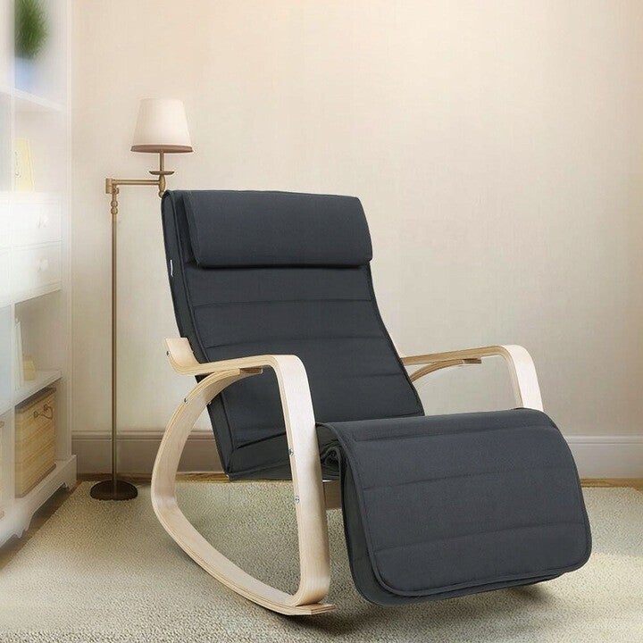 Fotel bujany charakteryzuje się nowoczesnym wyglądem i miękkim siedziskiem i jest idealny dla każdego, zarówno dorosłych, jak i dzieci. Co więcej, podnóżek można regulować na różnej wysokości, dzięki czemu nogi zawsze znajdą wygodną pozycję. Dzięki solidnej ramie z drewna brzozowego i antypoślizgowemu filcowi na nóżkach możesz bezpiecznie kołysać się w fotelu bujanym.