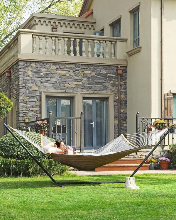 ✅Pasuje do ogrodu: Przymocuj ten hamak do swojego ogrodu lub podwórka i uczyń go częścią swojego codziennego życia. Można tu poczytać książkę lub zdrzemnąć się w leniwe popołudnie, albo położyć się w nim z dziećmi i obserwować gwiazdy nocą.