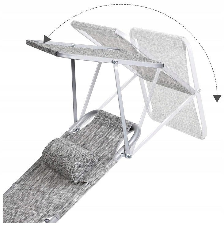 - Łatwa ochrona przed słońcem: Leżak jest wyposażony w parasol przeciwsłoneczny, który umożliwia czytanie czasopism bez oślepiania podczas rozkoszowania się słońcem na dziedzińcu. Nie musisz nawet wstawać