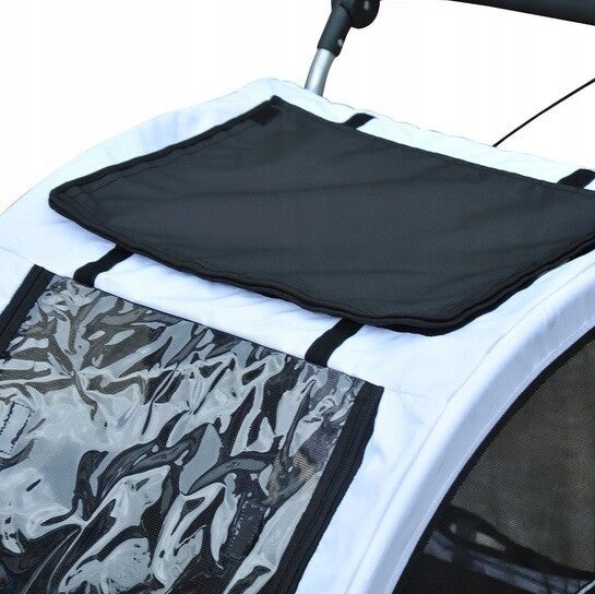 Wysokiej jakości przyczepa rowerowa dla psa posiada uniwersalny zaczep, który pasuje do każdego roweru. Koła można łatwo zdemontować i tym samym zaoszczędzić miejsca podczas przechowywania. Przyczepa jest dostosowana do rowerów o wielkości do 26 cali. Ramy wykonane są ze stali a sama naczepa z tkaniny Oxford 600D, co zapewnia ochronę przed deszczem. Przednie i tylne wejście można otworzyć za pomocą zamka. Dyszel i części boczne są składane. Przyczepa jest wyposażona w siatki do bezpiecznej podróży oraz przewiewu. Wbudowane haki pozwalają na przymocowanie smyczy. Podróżując po ulicach prosimy o wyposażenie przyczepy w dodatkowe światło tylne.
