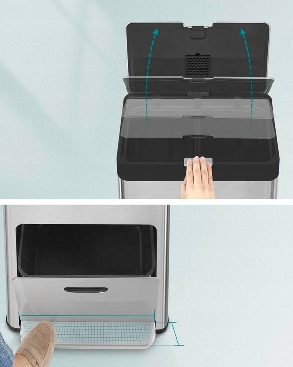 - [Jakość stali nierdzewnej] Wykonany ze stali nierdzewnej kosz do recyklingu jest odporny na odciski palców i łatwy do czyszczenia. Dodaje nowoczesnego i stylowego akcentu do każdej kuchni