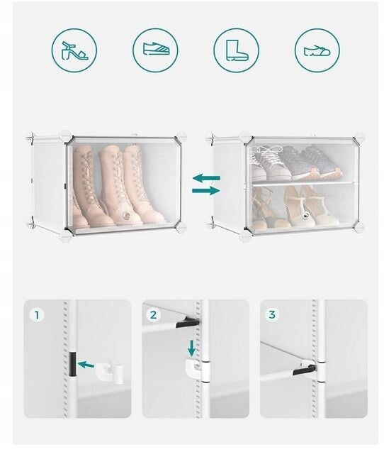 Zestaw 6 pudełek na buty, stalowa rama, plastikowe panele, biały LPC033W01