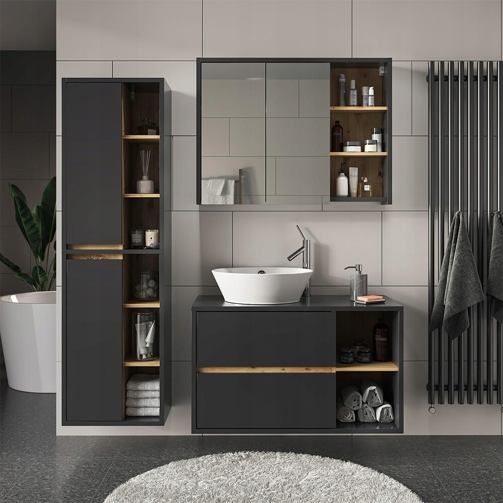Szafka łazienkowa z lustrem w łazience "Viola" VICCO - Antracyt/Dąb 100 x 75 cm