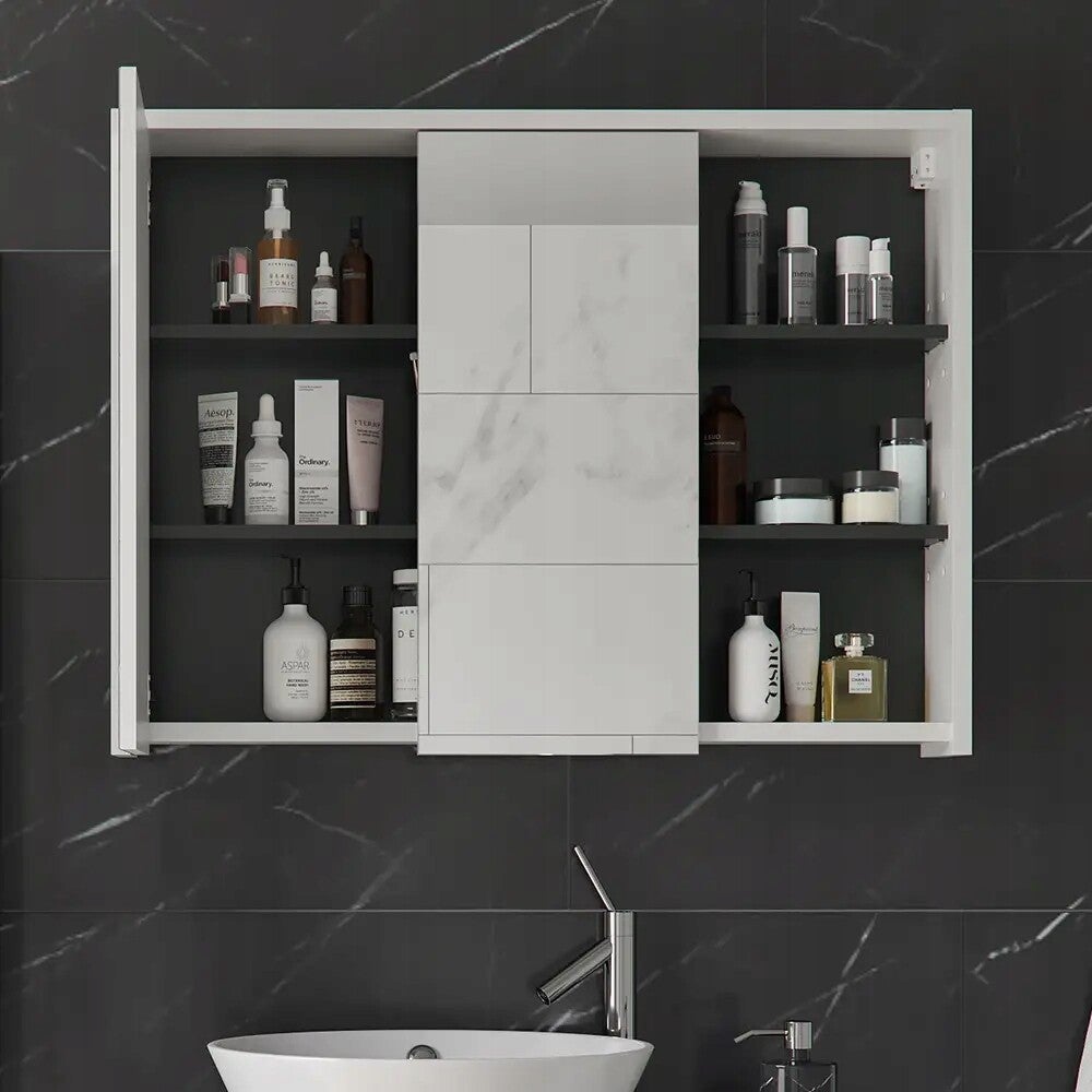 ➡ WYMIARY: Szafka z lustrem w łazience ma następujące wymiary: Szerokość: 100 cm, Wysokość: 75 cm, Głębokość: 18 cm. Wszystkie szczegółowe rozmiary są podane na zdjęciach.