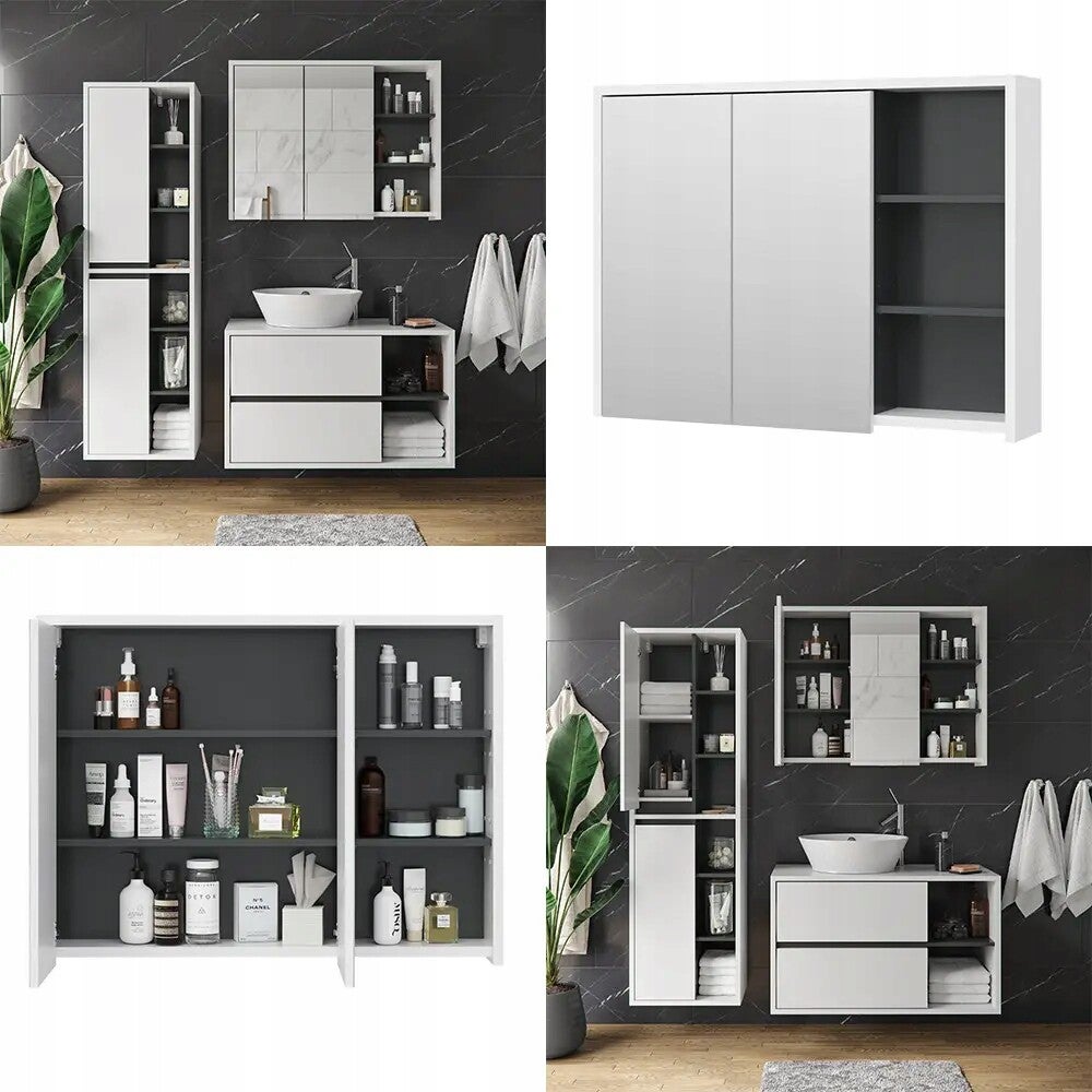 SZAFKA Z LUSTREM SZAFKA ŁAZIENKOWA PÓŁKA BIAŁA/ANTRACYT VICCO