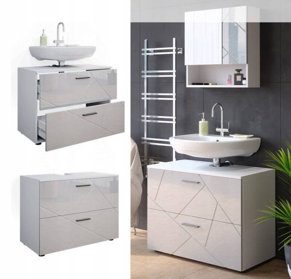 Szafka łazienkowa pod umywalkę, szafka do łazienki, Biały wysoki połysk