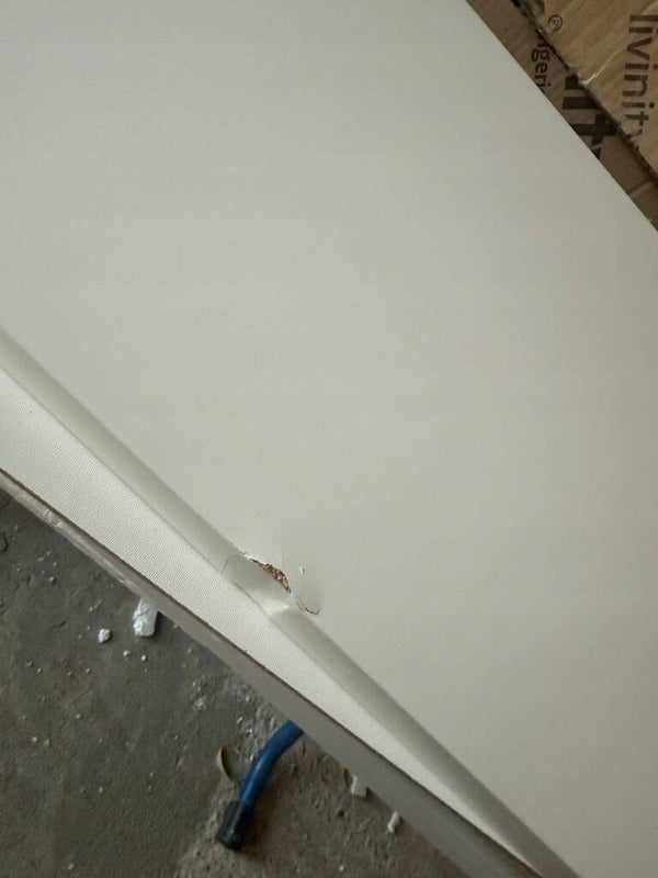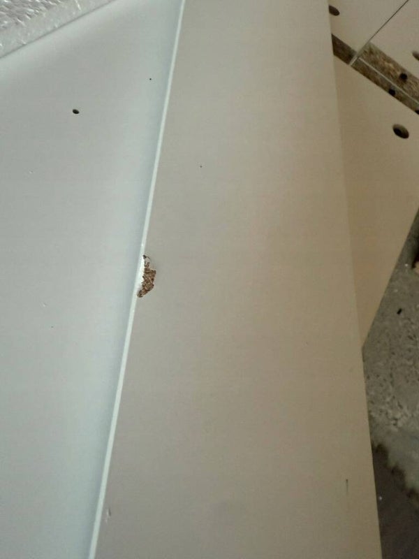 Lekko uszkodzone boki od strony pleców uzupełnione woskiem stolarskim. Dolny korpus od strony pleców, listwa oraz plecy szuflady- po zamontowaniu nie widoczne