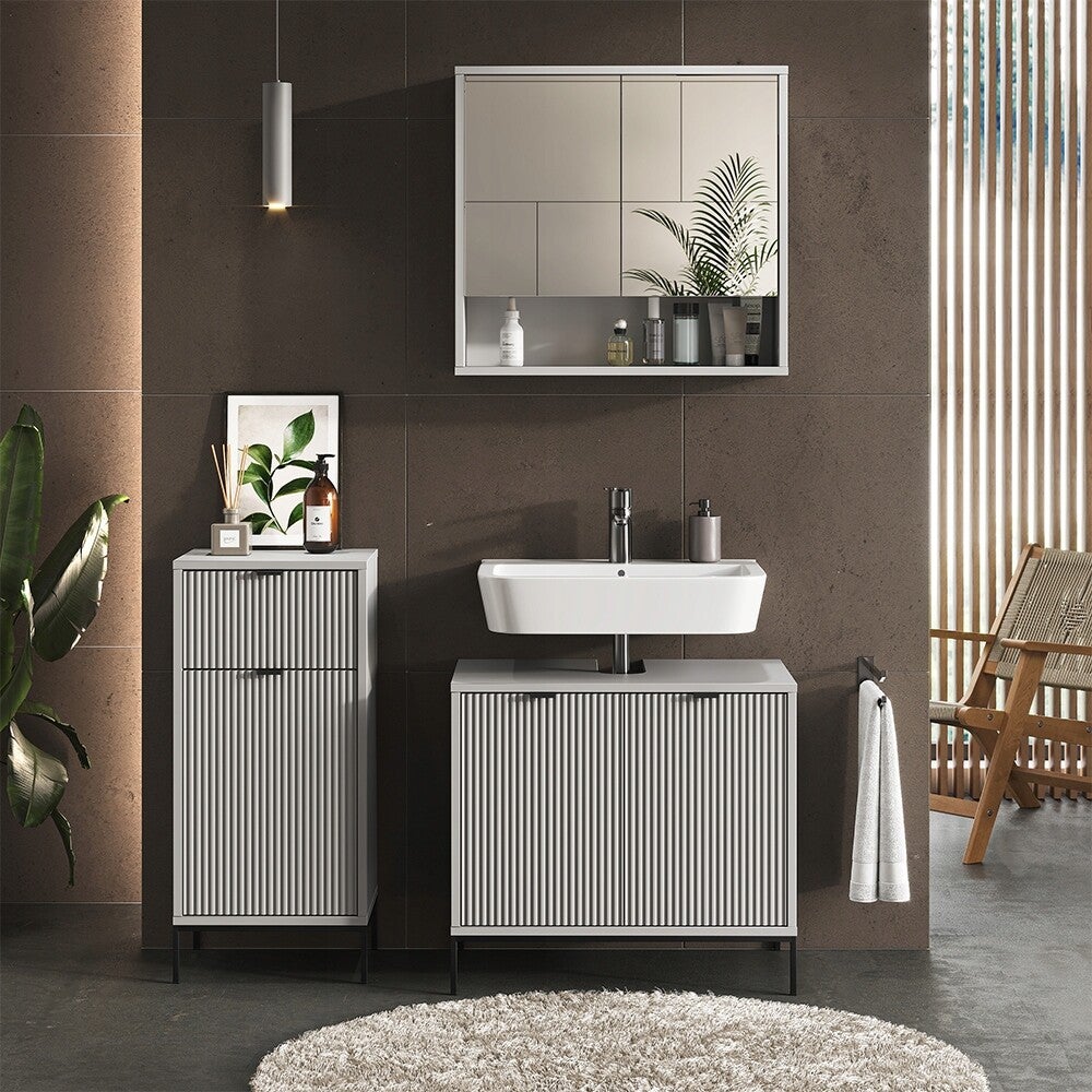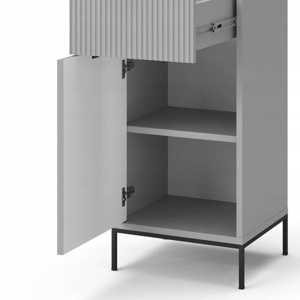 Wzbogac swoja lazienke o szafke Vicco Eliza midi w stylowym szarym kolorze. Waska szafka lazienkowa z drzwiczkami i szuflada zapewnia efektywna organizacje lazienki.