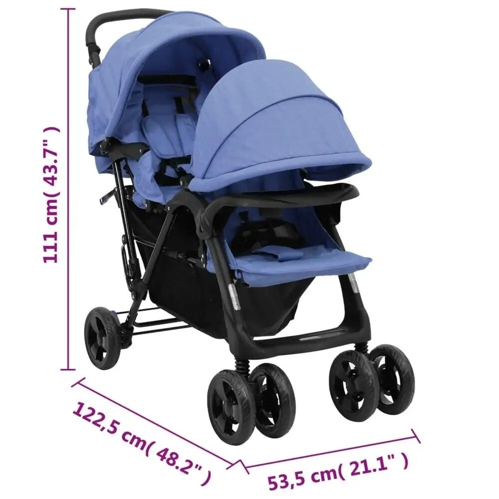 Podwójny wózek spacerowy został wykonany ze stali i lnu, dzięki czemu jest mocny i wygodny. Regulowane zadaszenie służy do ochrony dzieci przed promieniami UV. Wózek zawiera również kosz w dolnej części na zabawki, jedzenie, koce itp. Ponadto można go łatwo złożyć do kompaktowych rozmiarów, aby zaoszczędzić miejsce do przechowywania oraz na czas transportu.