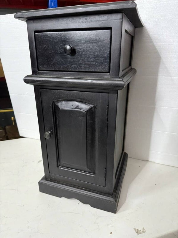 Szafkę wykonano ręcznie z litego drewna mahoniowego, dzięki czemu jest stabilna i trwała. Mahoń to drewno o prostym i równym usłojeniu, które jest stosunkowo wolne od pustych przestrzeni i odporne na butwienie. Jego czerwono-brązowy kolor z czasem ciemnieje, a po wypolerowaniu uzyskuje czerwonawy połysk. Mebel zawiera szufladę oraz drzwiczki, oferując wygodne przechowywanie. Może posłużyć także jako stolik nocny, szafka boczna lub dodatkowy blat.