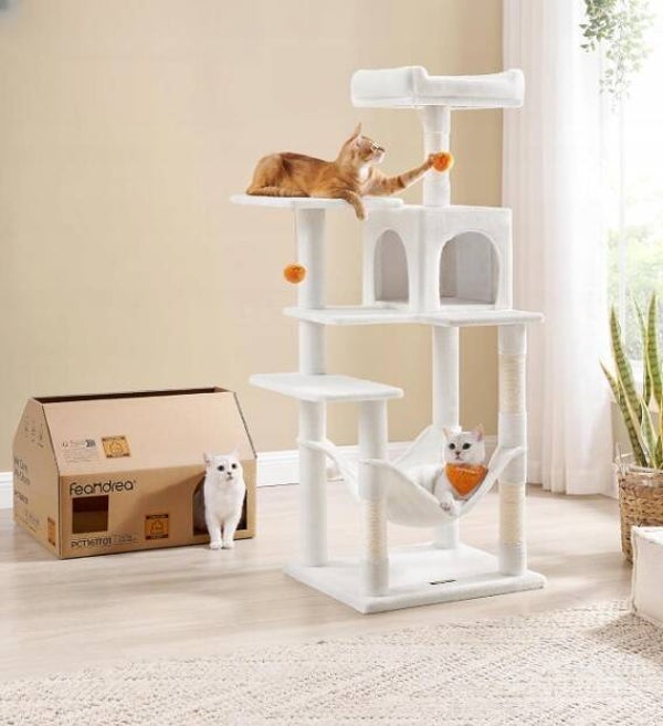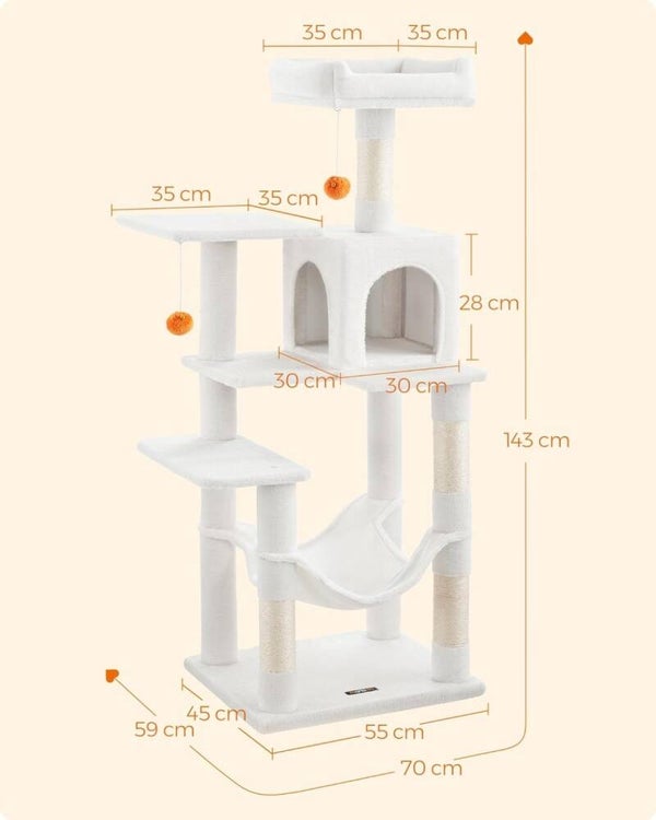 🐱 Drapak dla kota FEANDREA PCT161T01 – 143 cm, kremowy