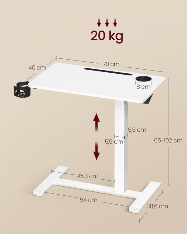 💻 VASAGLE Biurko mobilne z regulacją wysokości – 70x40 cm, białe